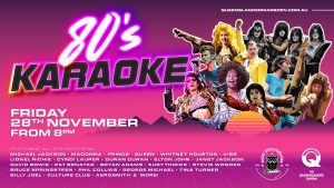 80’s KARAOKE at THE QUEENSLANDER! FRIDAY 28TH NOVEMBER FROM 8PM | FREE ENTRY Ready to step back in time? Dust off your leg warmers, tease