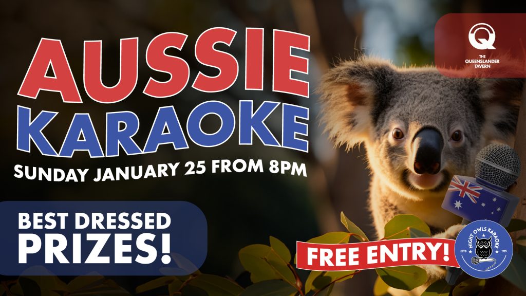 Oi oi oi! It’s time for AUSSIE KARAOKE at The Queenslander! Dust off your vocal cords and get ready to belt out the classics! On Sunday January 25th, we’re turning up the volume for an all-Australian karaoke showdown. Whether you’re channeling your inner Jimmy Barnes or the pop-perfection of Kylie, the stage is yours from 8PM!