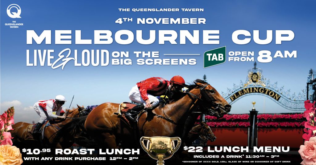 Make a day of it and fuel up for the race with our ROAST LUNCH for just $10.95 with a drink purchase available from 12pm – 2pm, or enjoy a delicious meal off our $22 lunch menu, which includes either a schooner of XXXX Gold, a 150ml glass of wine or a schooner of soft drink from 11:30am – 3pm! PLUS, TAB will be open from 8AM!
